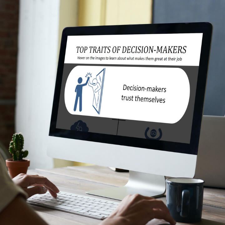 A brief presentation about decision-making developed to demonstrate some of the possibilities Storyline360 offers when it comes to displaying information interactively.