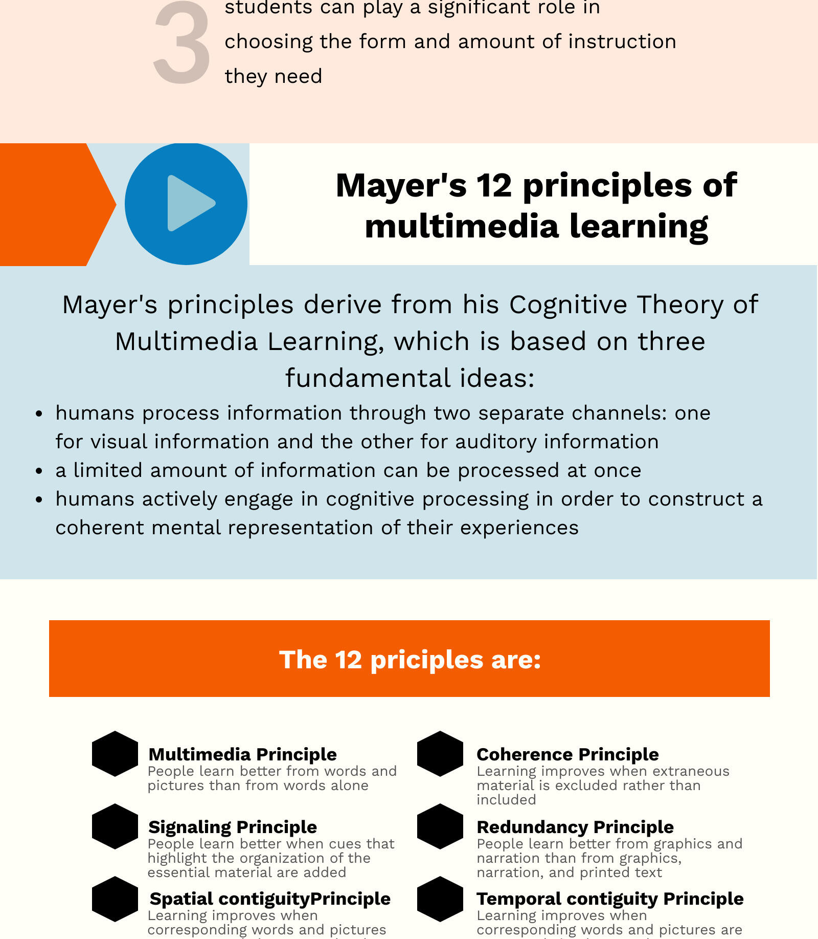 Finally, it should be pointed out that the instruction is an e-Learning course; therefore, Mayer’s 12 principles of multimedia learning (cognitivism) were definitely taken into consideration when presenting contents.